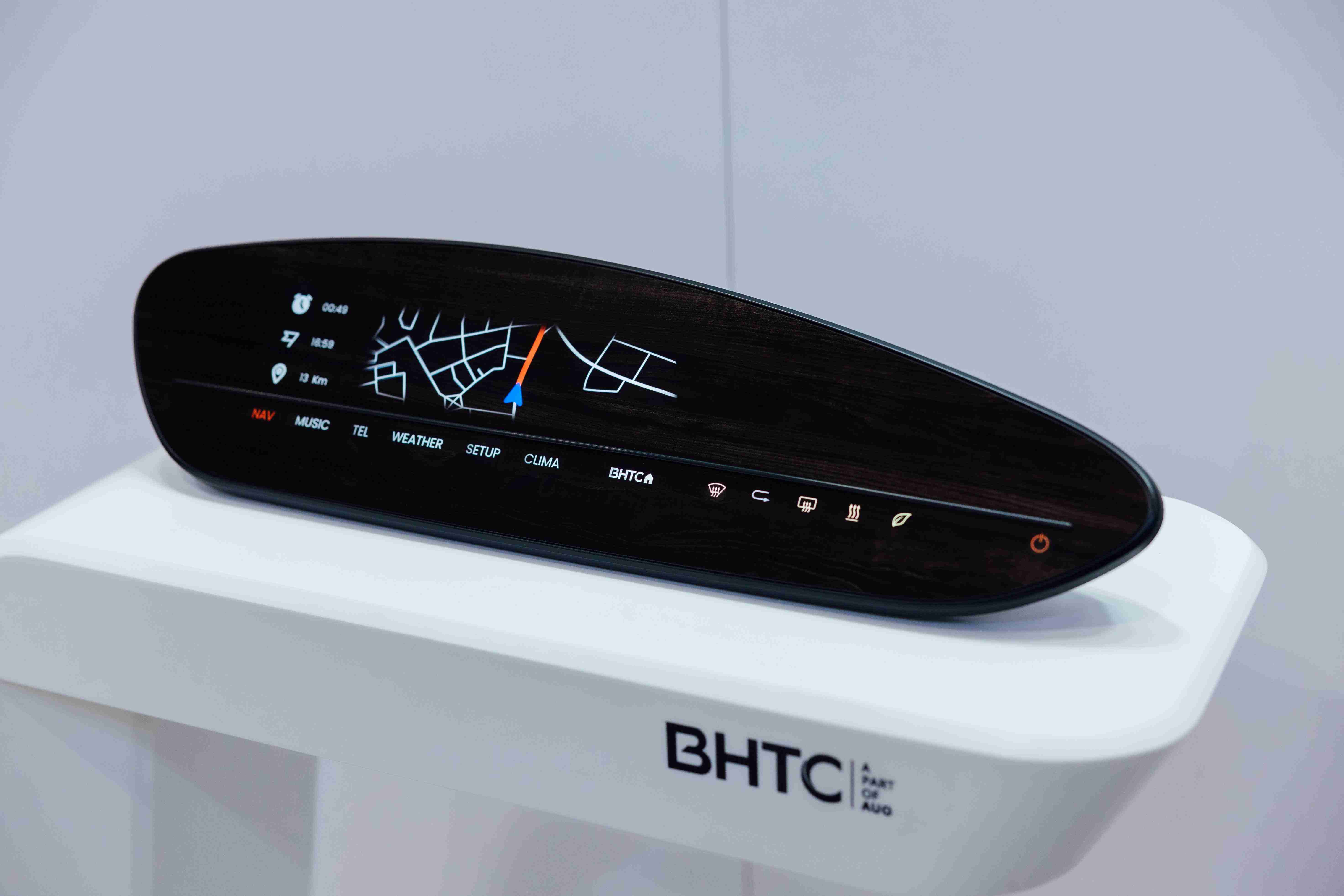 BHTC的木纹车用显示器(Display Behind Wood)将无缝木质表面与显示器结合后,,可以融入车内设计中,,提供驾驶优质的视觉效果,,,加上其无边框的设计和亮度调控,,创造更优质的车内体验。。