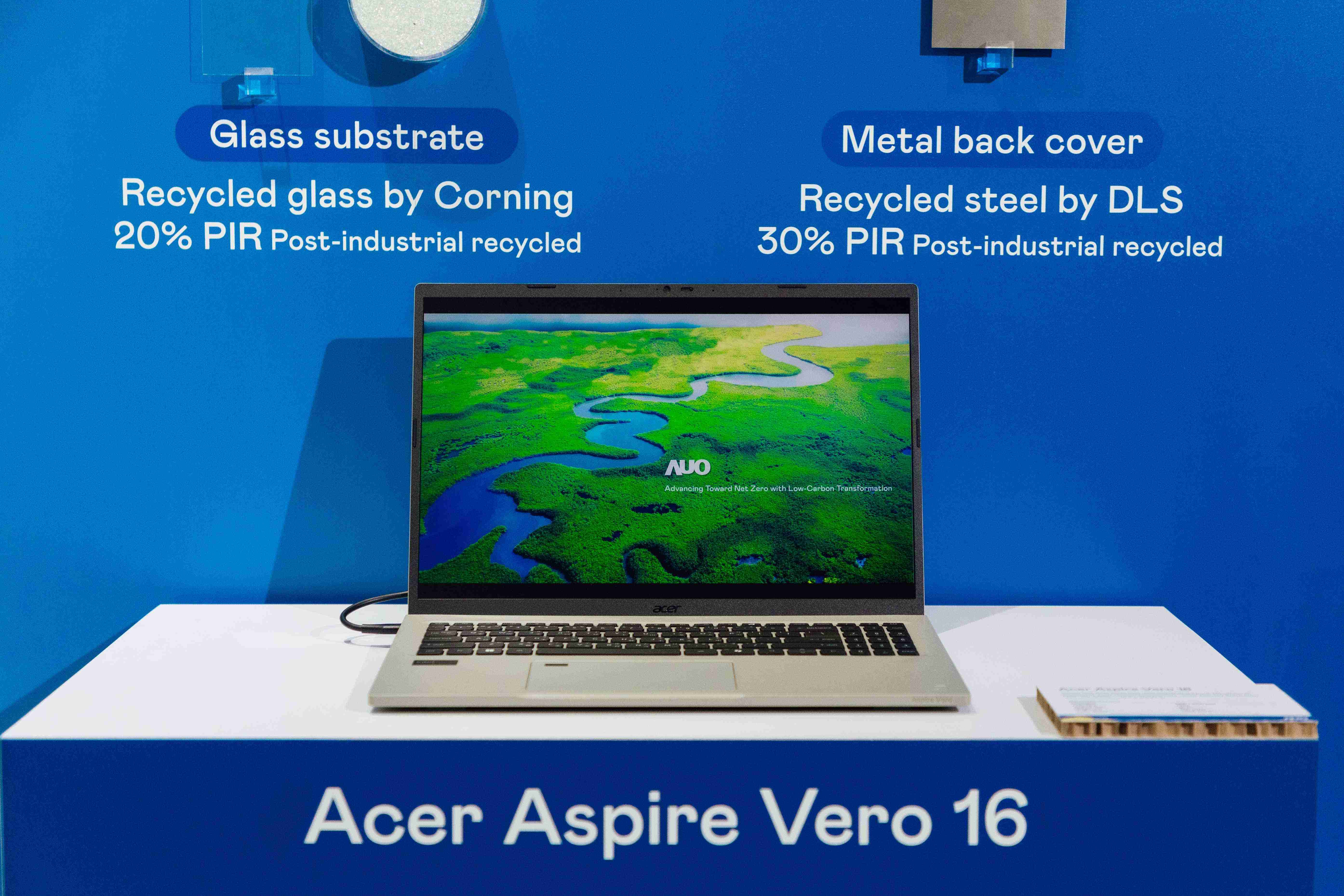 全球首款笔记型电脑采用z6尊龙100%绿电制造的面板,,,,结合PCR外亦使用工业后回收材料(PIR),,,例如回收玻璃和金属,,,,减少对环境的影响。。。。
