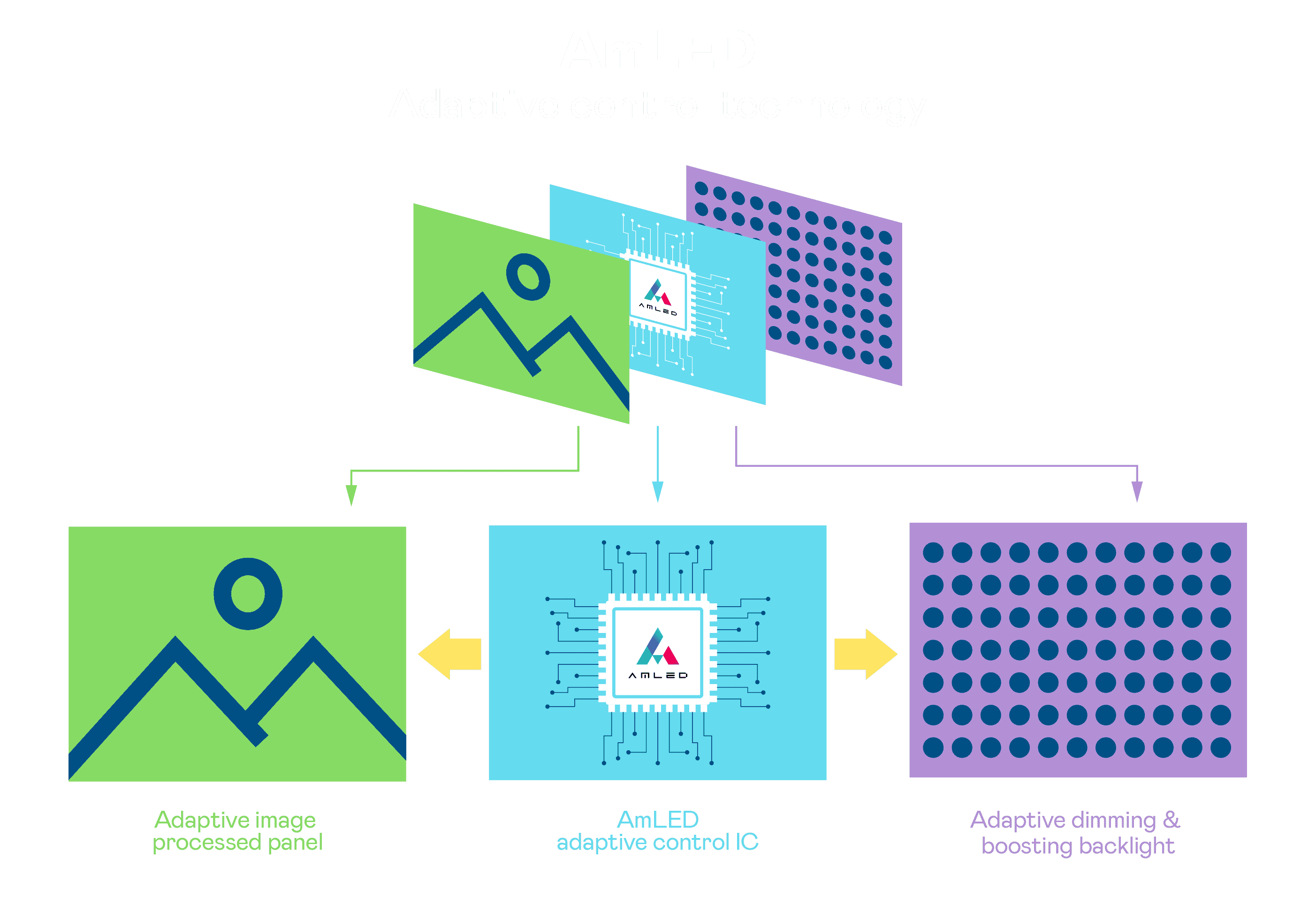 AmLED 具备更省电与低蓝光特性。。与一般的 LED 背光显示技术相比,,由于 AmLED 常时处于局部调光状态,,其功耗仅有前者的 50% 左右,,,同时 AmLED 还具备低蓝光特性,,,,满足长时间使用的护眼需求。。