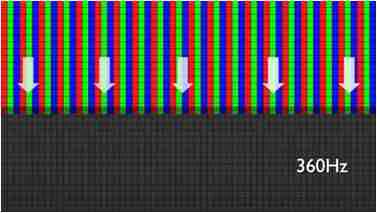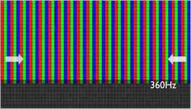 传统液晶驱动是从左到右单向进行,,,,在画面更新速度愈来越愈快的情况下,,位于驱动线路末端的右下角区域,,画素的闸极来不及在短时间内获得足够电压,,,,无法显示出正确的颜色资讯。。。。 |
