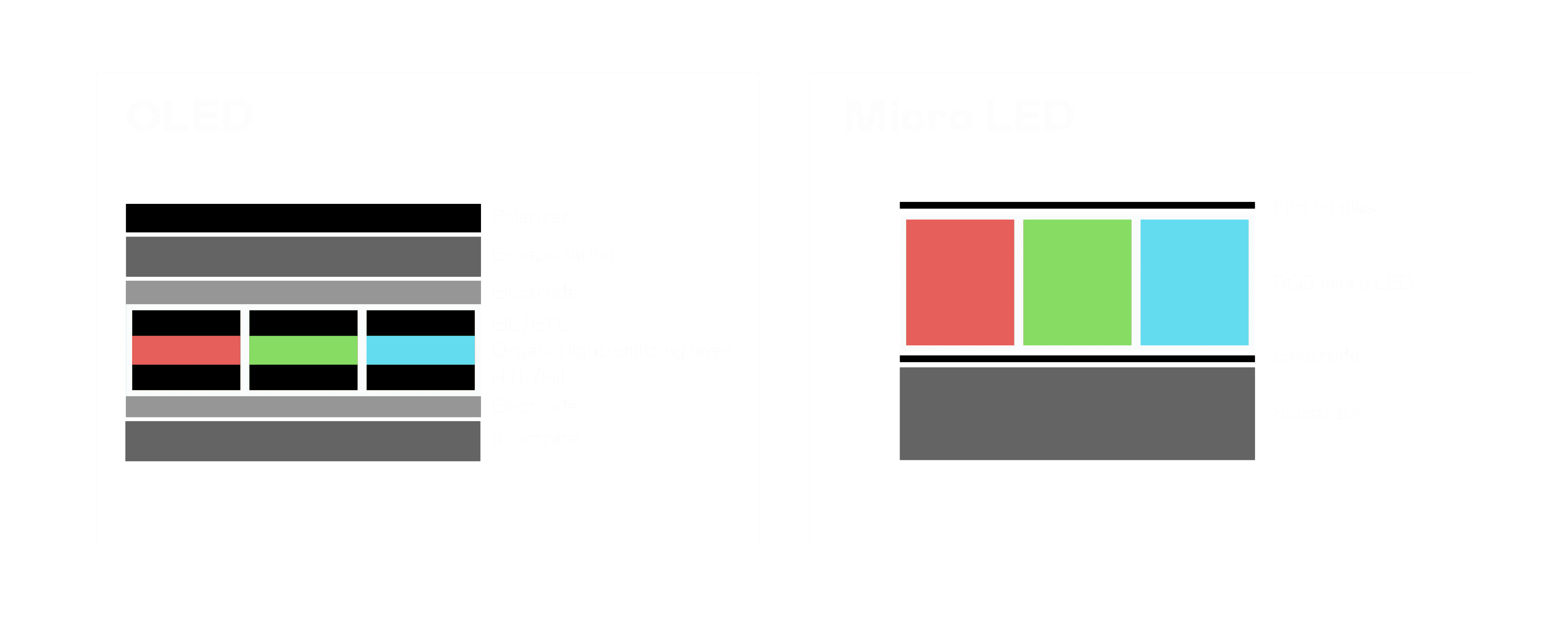 以 LED 做为显示画素,,,,可让 LED 的发光效率发挥到极致,,从而让显示器具备优异的亮度表现,,,不论是在户外或室内,,,,均具备出众的显示效果。。。。同时,,,与使用有机材料的 OLED 相比,,,,LED 具备更稳定、、寿命更长的特性,,,,不仅不会有画面烙印问题,,,而且更不容易出现故障、、、坏点。。。